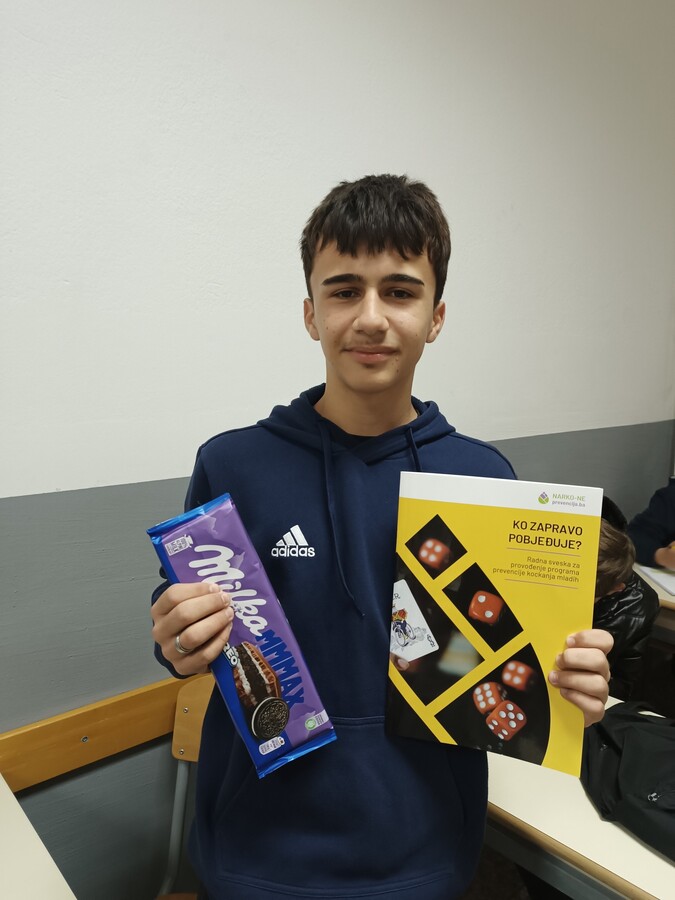 U prvom polugodištu školske 2025/2026. godine u našoj školi je, već drugu godinu zaredom, realizovan ciklus radionica u okviru Programa prevencije kockanja mladih "Ko zapravo pobjeđuje?", namijenjen učenicima prvog razreda srednje škole. Radionice su realizovale stručne saradnice Azra Pudavdić i Ivana Marić.