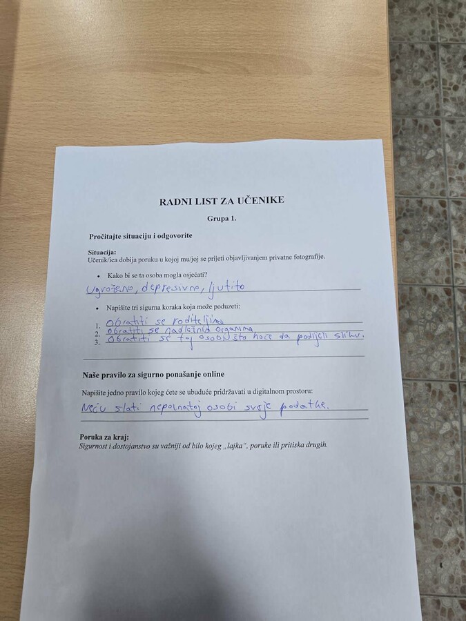 Naša škola kontinuirano radi na prevenciji rizičnih ponašanja i jačanju digitalne pismenosti učenika, jer vjerujemo da je sigurno digitalno okruženje zajednička odgovornost svih nas.